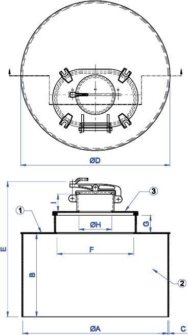 3 DF-174 HATCH W/ DF-569-5 ULLAGE HATCH 85316 STEEL